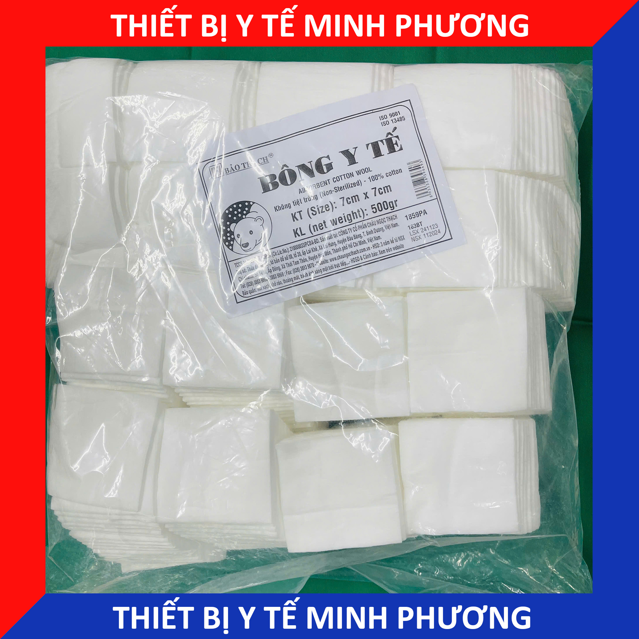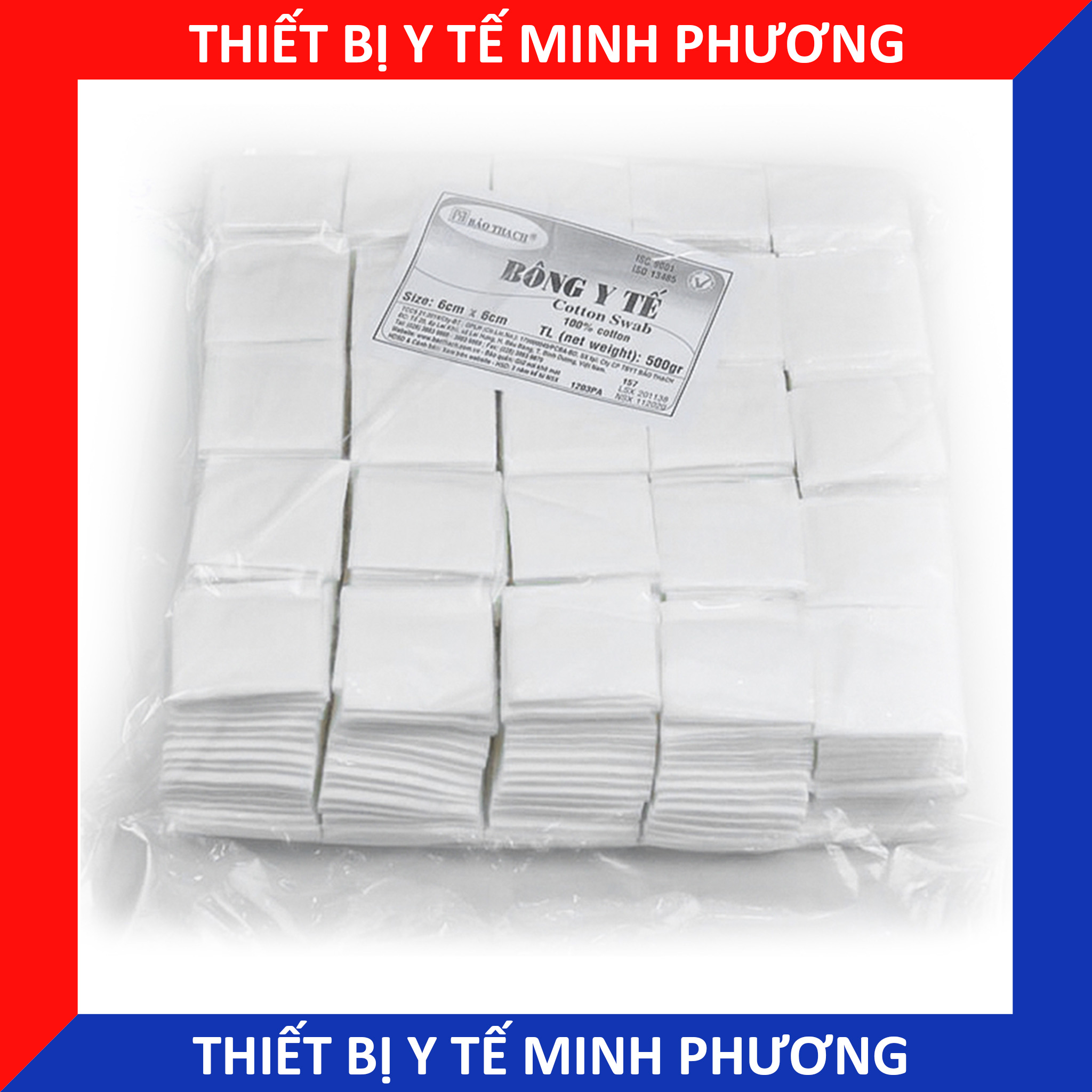 Bông cắt sẵn y tế Bảo Thạch cỡ 7x7cm (Bán theo bịch 500g)